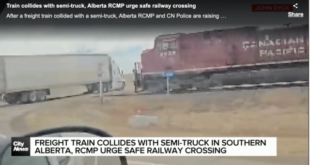 据温房网综合报道:呜呜的汽笛声越来越近、越来越急促,卡在铁轨上的白色半挂大卡车却动弹不得。一声巨响之后,火车继续一往无前,留下大卡车的残片在空中乱飞。 这个被路人拍下的惊悚瞬间,发生在阿省3号公路Taber小镇附近。先来 …